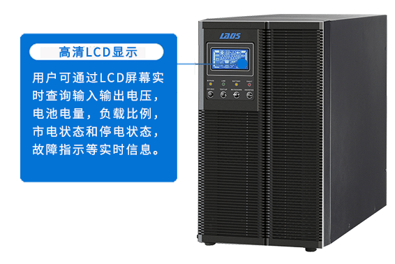 用戶可通過LCD屏幕實(shí)時(shí)查詢輸入輸出電壓,電池電量,負(fù)載比例,市電狀態(tài)和停電狀態(tài),故障指示等實(shí)時(shí)信息。