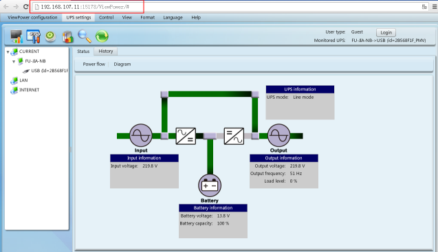 1、電腦IP:192.168.107.11,安裝ViewPower文本或標準版本運行。打開IE或fireFox,然后從用戶電腦(IP 192.168.104.11)輸入網(wǎng)絡(luò)地址遠程監(jiān)視器。例如,輸入“http://192.168.107.11:15178/ViewPower/”。、